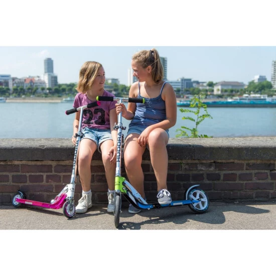 Hudora BigWheel 205 klappbarer Tret-Roller Scooter – grün/blau