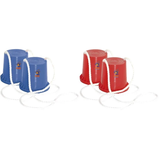 Das Set besteht aus zwei Paar Topfstelzen (je 1 blaues & 1 rotes Paar).