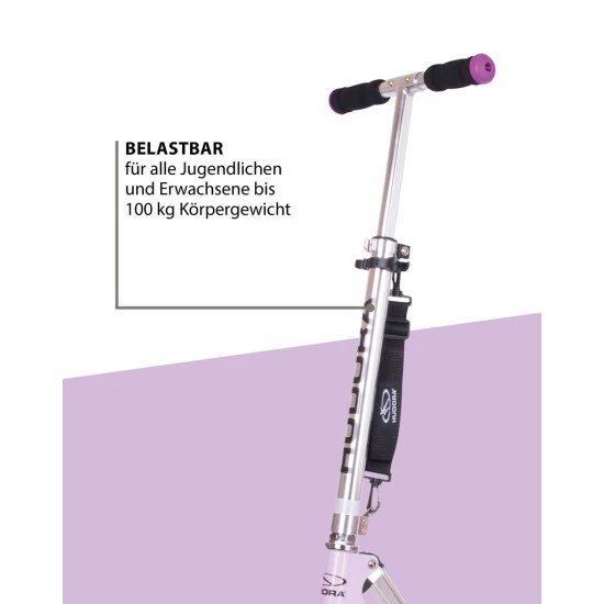Die schlanken Rollen erlauben hohe Geschwindigkeiten und viel Fahrspaß. Roller waren früher nur etwas für Kinder. Die Zeiten haben sich geändert und heute fahren auch viele ältere Mädchen und Jungs, Jugendliche und Erwachsene Scooter. Ein rasch zusammenklappbarer Roller ist einfach perfekt für den alltäglichen Arbeits- oder Schulweg. Der HUDORA BigWheel ist mit seinen flinken Reifen genau der richtige Roller für Schule, Arbeit und Freizeit. Dieser Aluminium-Roller hat extralange Schmutzfänge sowohl am Vorderrad als auch am Hinterrad. Sicherheitshandgriffe mit Aufprallschutz, ein Ständer, eine Hinterradreibungsbremse und Reflektoren an Lenker und Deck sind zusätzliche Sicherheitsfeatures. Der Lenker ist höhenjustierbar und passt sich so seinen Fahrern an. Den BigWheel Roller gibt es in vielen verschiedenen Farbkombinationen. Durch das hohe maximale Benutzergewicht von 100 kg ist dieser Roller auch für sportliche Erwachsene geeignet.