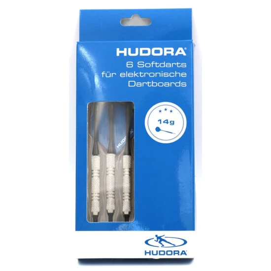 Softdart für Elektronik-Dartboard 6 Stück von Hudora – 6 Dartpfeile für elektronische Dartboards mit zusätzlichen 46 Ersatzkunststoffspitzen – Gewicht pro Pfeil 14 g – Flights austauschbar – Barrel aus Stahl – Schaft aus hochwertigem Nylon