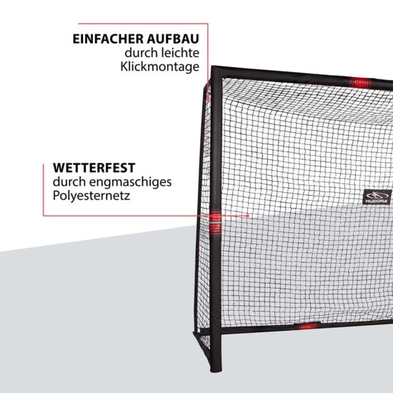 Das HUDORA Fußballtor Pro Tect 300 ist ein hochwertiges Fußballtor für ein professionelles Kickerlebnis im Freizeitbereich. Einfach im Aufbau, stark konstruiert und mit gepolstertem Aufprallschutz. Beim HUDORA Fußballtor Pro Tect 300 wird Schutz groß geschrieben, daher sind Latte und Pfosten aus pulverbeschichtetem Stahl mit einer EPE-Schaum-Polsterung ummantelt. Durch diese Kombination entsteht ein Fußballtor mit großem Pfosten- und Lattendurchmesser. Der Torwart und auch die Feldspieler sind so bei einem Aufprall gut geschützt. Wer in seiner Freizeit Fußball spielt, dabei aber keinen Zugang zu einem Vereinsplatz hat, weiß ein richtiges Tor mit Tornetz zu schätzen. Das engmaschige und stramm gespannte Netz mit 45 mm Knotenabstand macht Laune – es geht doch nichts über das Gefühl, den Fußball im Tornetz zappeln zu sehen! Die stabile Kastenkonstruktion des HUDORA Fußballtor Pro Tect 300 kommt in den Maßen 300 x 200 x 120 cm. Beschriftete Stangen und eine einfache Click-Montage machen den Aufbau des Fußballtores zu einem Kinderspiel. Fünf U-Heringe sorgen für eine solide Standfixierung. Durch die Komplett-Ummantelung aus stabilem Tarpaulin-Material ist dieses Fußballtor zudem noch absolut wetterfest.