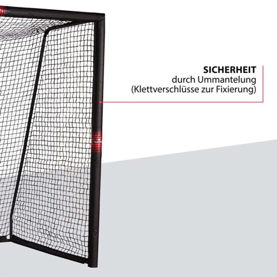 - Hochwertiges Fußballtor mit Schaumstoff- Polsterung in schwarz/neonrot