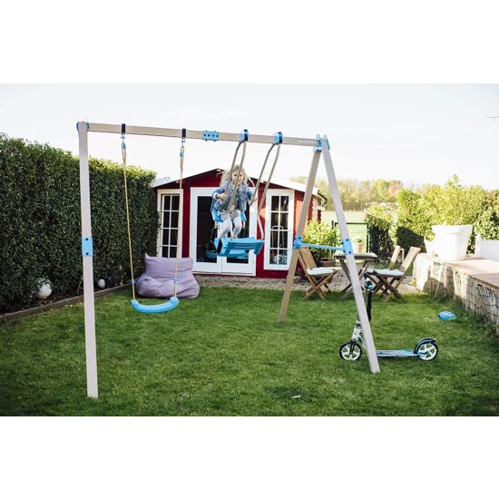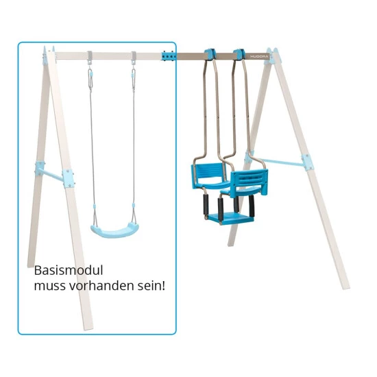 Die Brettschaukel aus dem Basismodul behält bei dieser Ergänzung Ihren Platz, so dass ein Nebeneinander genauso möglich ist wie das Miteinander und man allein, zu zweit oder zu dritt schaukeln und den Spaß daran genießen kann.