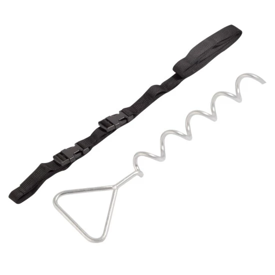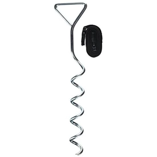 Das Erdankerset macht Gartentrampoline standfest gegen Wind oder unbeabsichtigtes Verrutschen. Dies verhindert Schäden am Trampolin und schützt die Umgebung. Im Set enthalten sind vier verzinkte Erdanker aus 8 mm dickem Stahl und vier robuste Sicherungsriemen von je 1,70 m Länge. Die Erdanker haben eine Länge von 41 cm und lassen sich leicht in den Rasen treiben. Das Erdankerset ist auch geeignet zum Halten von Abdeckplanen oder Spannleinen (z. B. an Pavillons).