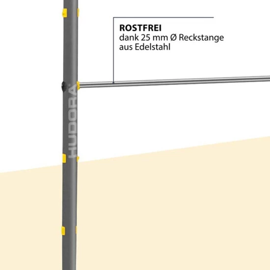 Für Turnspaß im Garten – mit dem Fabian Pro könnt ihr das ganze Jahr drauf los turnen. Denn die Reckstange ist aus Edelstahl und somit rostfrei und witterungsbeständig.